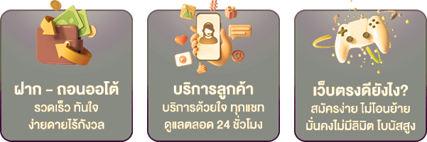 ตอบ : - ระบบฝาก-ถอนอัตโนมัติ 24 ชั่วโมง มีโปรโมชั่นแจกเครดิตฟรี เว็บตรงไม่ผ่านเอเย่นต์ รองรับทุกอุปกรณ์ และมีทีมซัพพอร์ตดูแลตลอด 24 ชม.